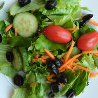 Roasted yams, sauteed green beans, tartar sauce, lemon wedge