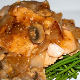 Grilled chicken breast, linguini pasta, steamed broccoli, marsala sauce