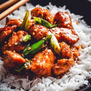Chicken thigh, roasted zucchini, mushrooms, scallions, ginger Unagi sauce